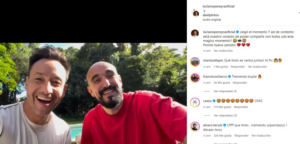 El mes pasado, Luciano y Abel anunciaron la salida de esta canción con un mensaje en las redes sociales: “Después de tantos años de amistad y caminos compartidos, hemos creado una canción juntos. Pronto la compartiremos con ustedes y hoy filmaremos el video, así que envíennos mensajes llenos de amor y alegría para que todo salga bien”.