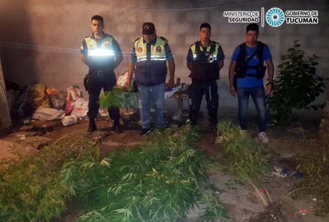 Los allanamientos se realizaron a las 18 horas en los domicilios de un tal “Tutu”, un tal “Culau” y un tal “Vaquel”, los tres señalados como los autores del robo en el que había resultado víctima una vecina de la zona. En cuanto a los elementos que se buscaba, resultó negativa la medida; sin embargo, en el fondo de la vivienda de “Vaquel”, se encontraron las plantas de Cannabis sativa, resultado ser tres plantas de más de 2 metros de altura y dos pequeñas.