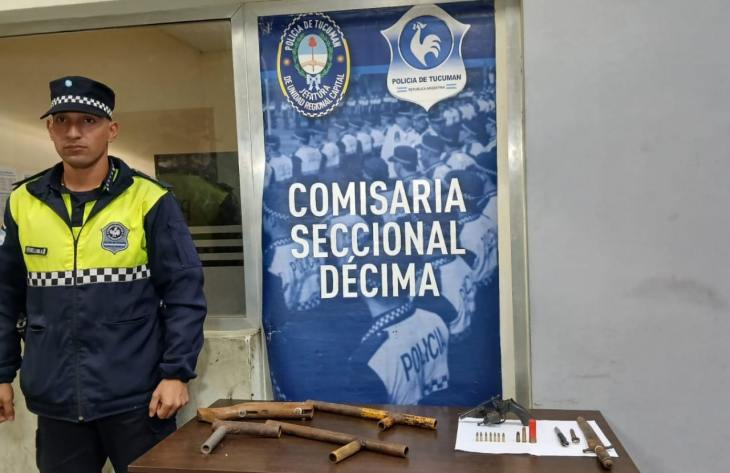 Sobre los procedimientos detalló el comisario inspector Armando Espeche, jefe de Zona 2 de la Unidad Regional Capital: “Como resultado de la primera medida judicial, luego de haber realizado una investigación penal preparatoria se solicitó a la Unidad Fiscal Criminal las medidas de allanamiento, las cuales resultaron positiva. En el primer domicilio en el barrio San Jorge se logró encontrar dos armas hechizas de las denominadas “tumberas”, como así también un revólver calibre .22 operativo, veintidós cartuchos de idénticos calibres, un cartucho de escopeta, un cartucho calibre 38 y un cartucho de 9 milímetros”.