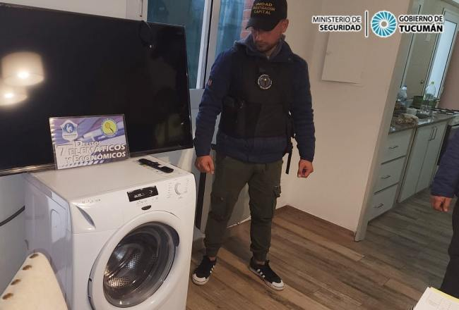 Teniendo presente esta denuncia, un equipo de la Unidad Especial se abocó a la tarea investigativa y se solicitaron medidas judiciales de allanamientos en dos domicilios en los cuales se secuestró un Tv Led, un lavarropa automático, dos teléfonos, 21 recibos, pagarés y un duplicado de la llave de un automóvil marca Nissan.