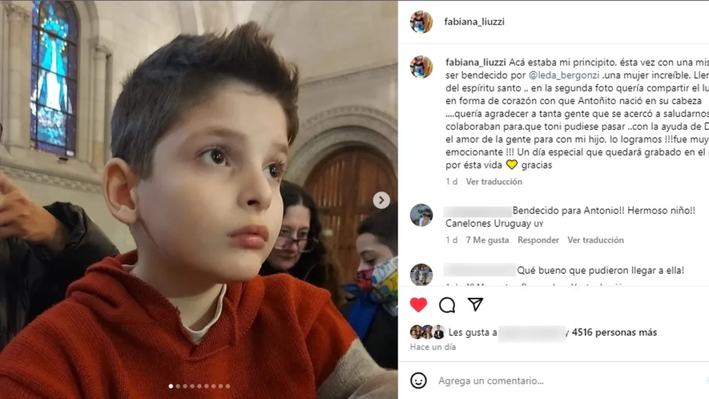 Es así que hace unas horas la ex vedette compartió la conmovedora experiencia a través de sus redes sociales. “Antonito fue bendecido por @leda_bergonzi. ¡Fue una experiencia maravillosa! ¡Gracias a todos los que nos ayudaron por el amor y la empatía!”, escribió en un primer posteo donde se lo ve al nene arrodillado frente a un altar con la la figura de Jesucristo y un enorme corazón de rosas rojas.