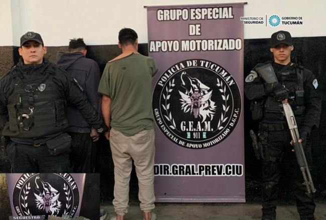 Efectivos de la de la División Grupo Especial de Apoyo Motorizado (GEAM), aprehendieron a dos hombres que asaltaron a un adolescente y se llevaron sus pertenencias luego de golpearlo.