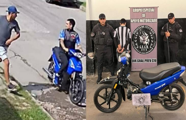 Las imágenes de dos hombres a bordo de una motocicleta quedaron registradas luego que le robaran el celular a una transeúnte. Uno de los malvivientes fue reconocido por personal del Grupo Especial de Apoyo Motorizado y fue aprehendido en la tarde del lunes.