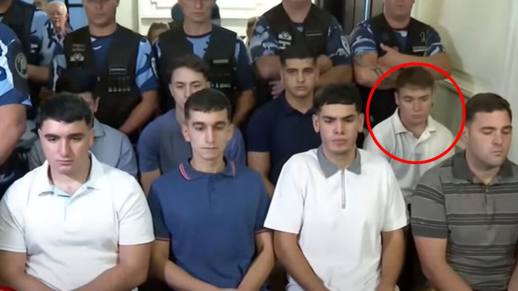Por supuesto que el diálogo es apenas un cruce de palabras perdidas porque los ocho rugbiers están permanentemente custodiados por policías que lo rodean de comienzo a fin. A los costados y detrás de ellos siempre hay fuerzas policiales.