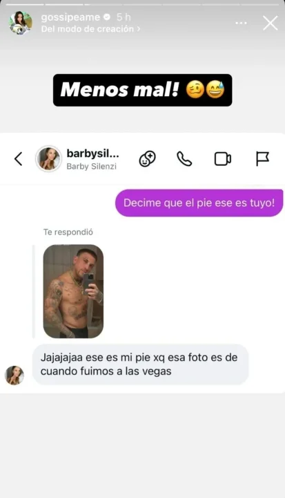 Ante la viralización de la imagen, la cuenta Gossipeame le consultó a Silenzi si sabía algo al respecto, a lo que ella confesó que se trataba de su pie: “Jajajajaa ese es mi pie, xq esa foto es de cuando fuimos a Las Vegas”.