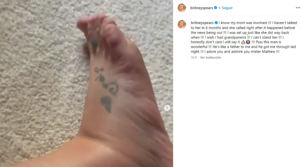 El tobillo de Britney Spears y el mensaje desmintiendo una pelea
