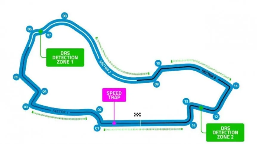 El Circuito de Albert Park de Melbourne tiene una longitud de 5.278 kilómetros. La primera carrera de la Fórmula 2 que se disputó allí fue en 2023 y la vuelta más rápida fue de 1:45.118 registrada por Ayumu Iwasa, con la escudería DAMS. El Sprint Race cuenta con 23 vueltas (121.394 kilómetros) y la Feature Race con 33 vueltas (174.174 kilómetros).