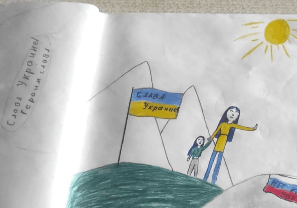 Todo comenzó cuando su hija, Masha, entonces de 12 años, hizo un dibujo contra la guerra en Ucrania en abril del año pasado en su clase de arte.
