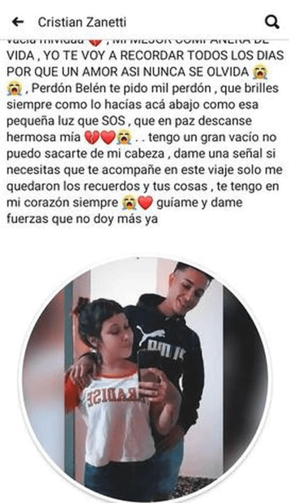 Horas antes de su aprehensión, Zanetti realizó un posteo en la red social Facebook en el que se despidió de su pareja y ratificó la pista del suicidio, lo cual fue tomado como un intento de querer desviar la investigación.
