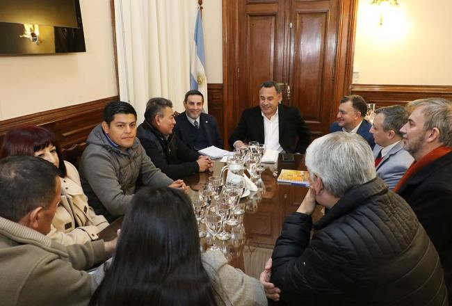 Medina Ruiz junto al ministro de Gobierno y Justicia, Regino Amado, y el personal de gabinete del Ministerio de Economía recibieron a los gremios de ATSA, SUMAR, AME y SITAS a fin de escuchar las propuestas.