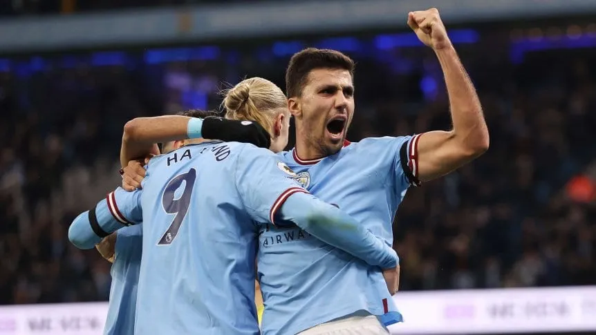 Ederson; Manuel Akanji, Rúben Dias, Nathan Aké; Rodri, Bernardo Silva; Riyad Mahrez, Kevin De Bruyne, İlkay Gündoğan, Jack Grealish; Erling Haaland. DT: Pep Guardiola.