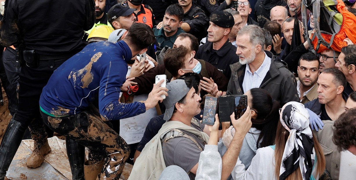 Numerosas personas indignadas recibieron con insultos a la comitiva, mientras que tanto el rey Felipe como la reina Letizia intentaron mediar con jóvenes que se les acercaron en un pueblo donde hubo al menos 62 muertos por las inundaciones, que provocaron 213 fallecimientos en la provincia, así como un número indeterminados de desaparecidos en el mayor desastre natural en España en lo que va de siglo