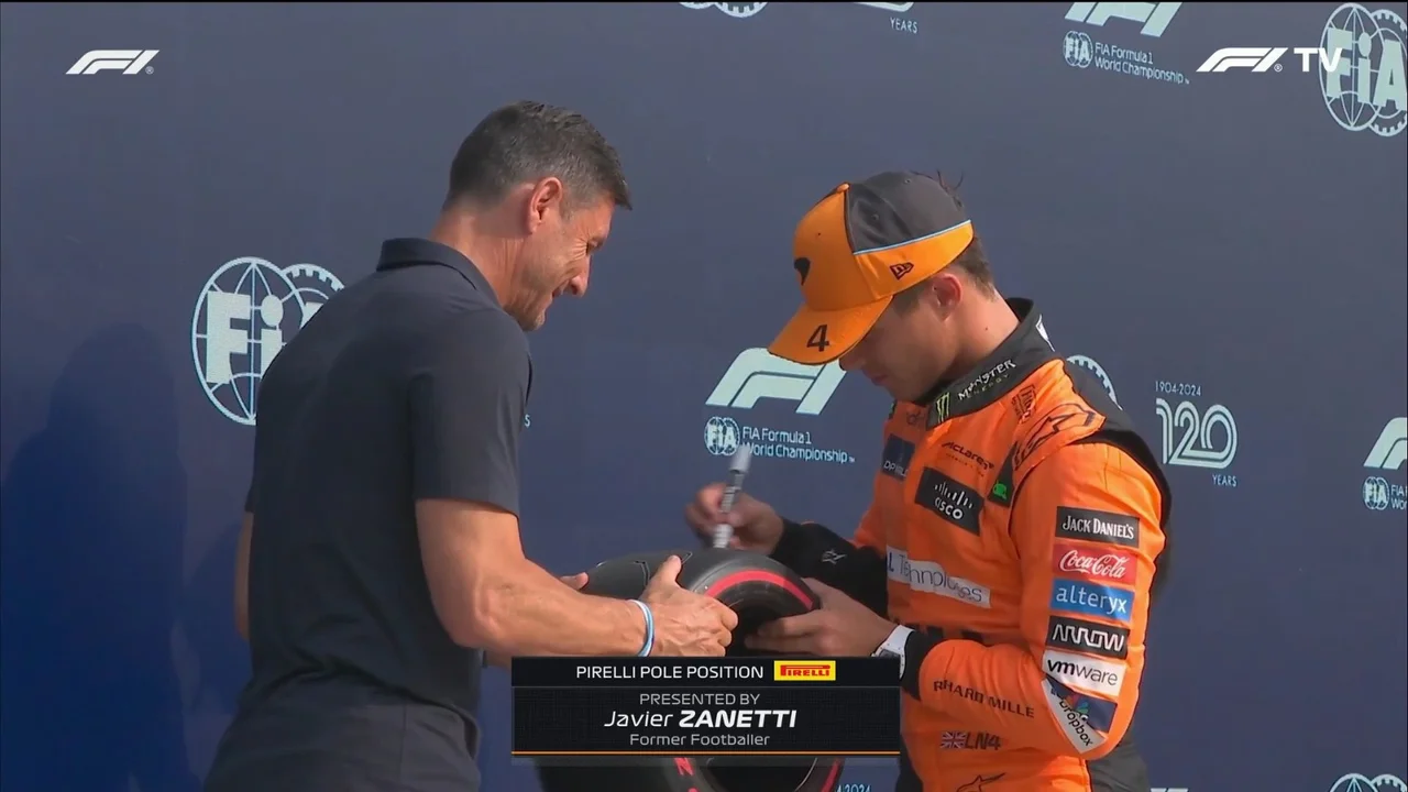 El ídolo del Inter de Milán paseó por las instalaciones del Autódromo Nacional de Monza. En el trayecto de su visita, se cruzó con el automovilista británico Lando Norris.