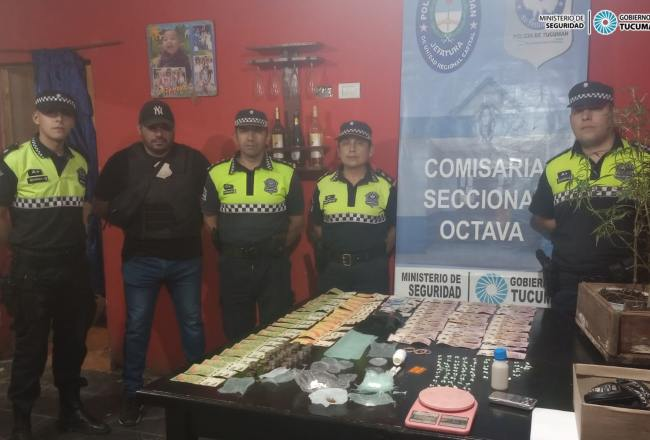 En el inmueble allanado los investigadores hallaron 155 envoltorios plásticos de las denominadas bochitas, pastillas de clonazepam, plantines de cannabis, dos piedras de cocaína, una balanza de precisión digital, ocho teléfonos celulares de distintas marcas, la suma de veintinueve mil ciento veinte pesos, y la réplica de un arma de fuego.