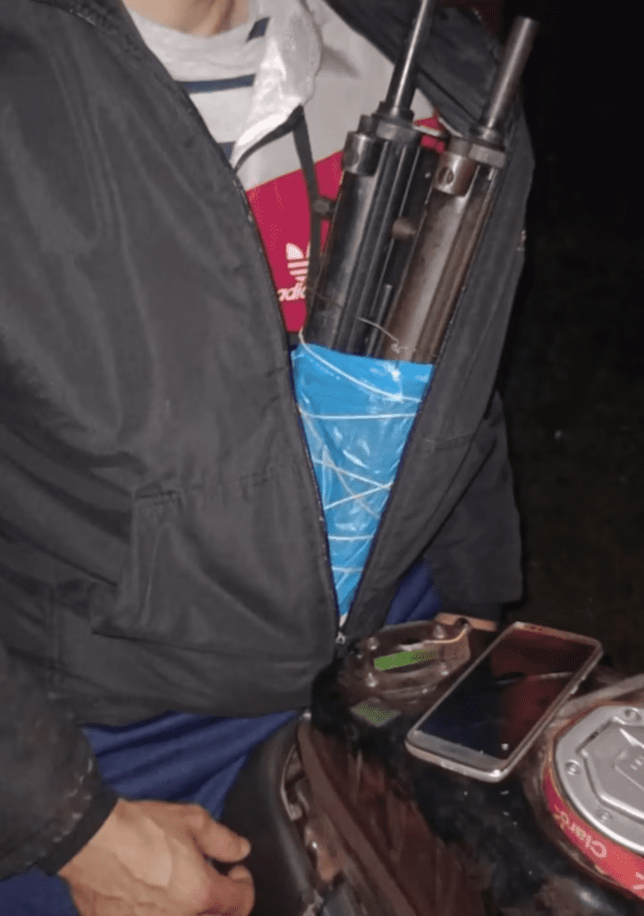 “Al momento de la inspección, los uniformados observaron a simple vista que el motociclista ocultaba un elemento dentro de su campera. Al solicitarle que exhiba sus pertenencias, detectaron que se trataba de dos armas de fuego tipo subfusil con sus respectivas numeraciones suprimidas, sin contar con documentación alguna que justifique su tenencia o portación, encontrándose en infracción a la Ley Nacional de Armas y Explosivos”, informó Gendarmería.
