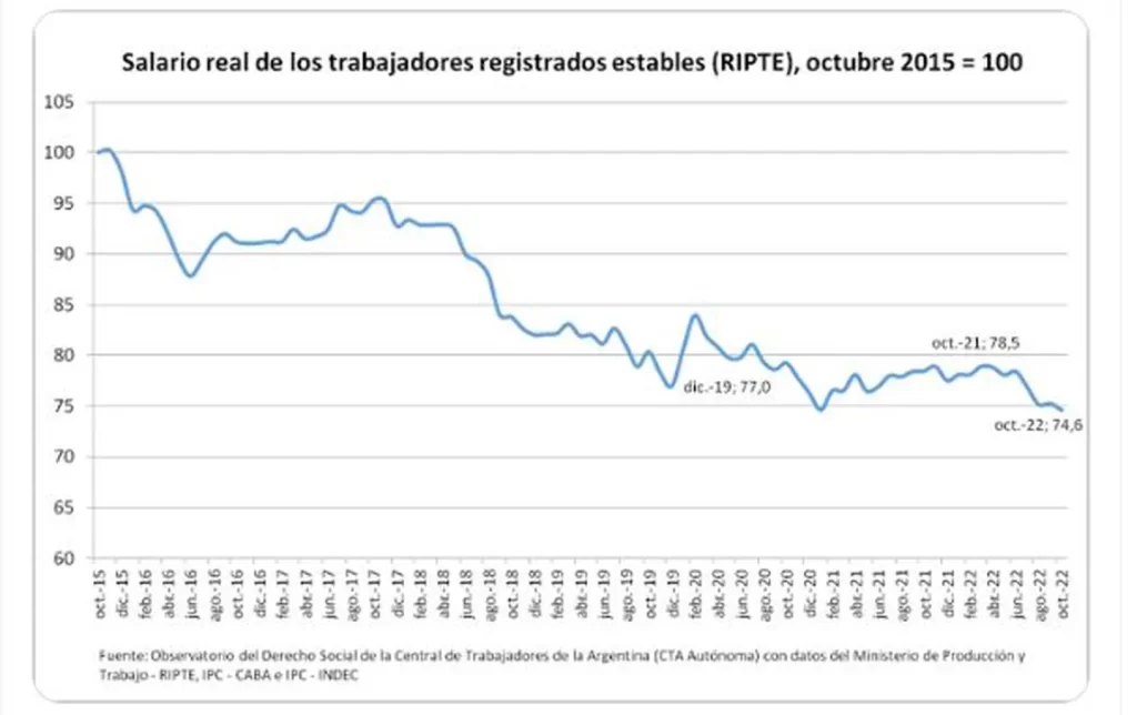 A octubre, el promedio de las paritarias que se cerraron llegaron al 91% anual, mientras el mes pasado habría escalado hasta el 95%. Asimismo, en el décimo mes, el salario real de los trabajadores registrados marcó un mínimo en los últimos 15 años.