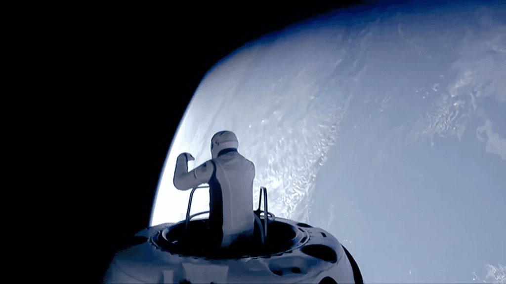 Isaacman -piloto y filántropo de 41 años, fundador de una empresa de procesamiento de pagos on line- abrió la escotilla cuando la Dragon viajaba a más de 25.000 kilómetros por hora, a 740 kilómetros de la Tierra, y capturó desde la cámara de su casco imágenes de una puesta de sol entre la Antártida y Australia.