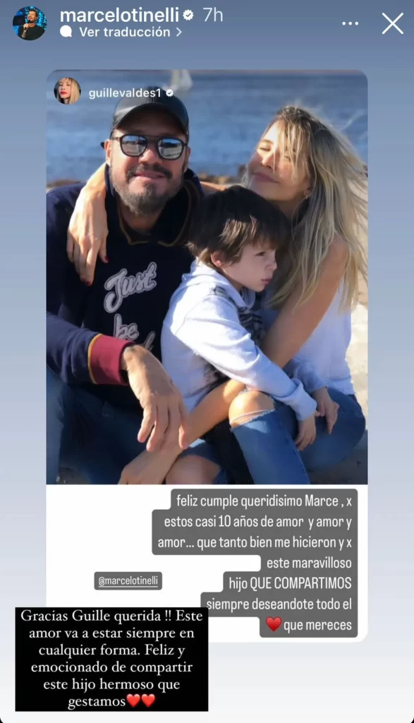 Pero hubo uno particular que Marcelo no dudó en compartir desde sus Instagram Stories: el de su última pareja y madre de Lolo, Guillermina Valdés. «Feliz cumple queridísimo Marce, por estos casi 10 años de amor y amor y amor… que tanto bien me hicieron y por este maravilloso hijo que compartimos siempre deseándote todo el amor que merecés» le deseó la modelo junto a una emotiva postal de los dos con su hijo en común.
