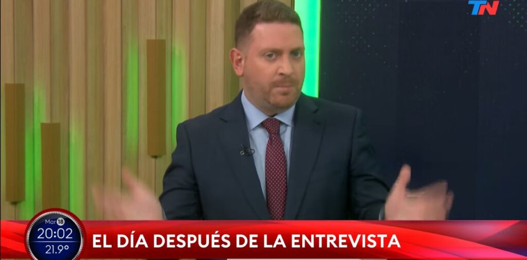 «Todos estaban ahí, al asesor, todos mirando. Creo que mi error es que me faltó firmeza para mandarlo a la mierda a Santiago Caputo. Tuve miedo de que la nota se suspenda, no sé, cosas que puede pasar. En ese momento solo pensé ‘quiero que la nota esté, que no corra riesgo, quiero el material'», reveló.