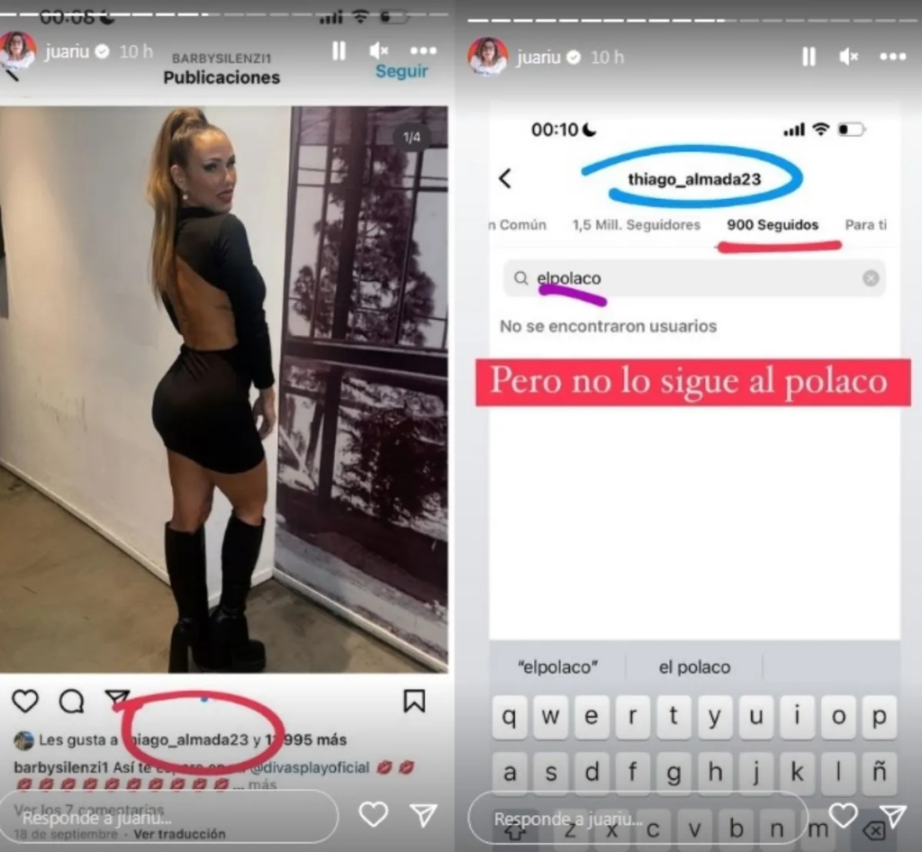 Y ahí Juariu aportó pruebas del accionar virtual del conocido futbolista: «Este jugador la empezó a seguir», contó remarcando que se trataba de Thiago Almada, campeón del mundo con el Seleccionado Nacional en el Mundial Qatar 2022.