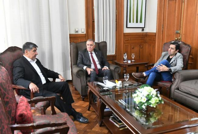 El gobernador Osvaldo Jaldo recibió esta mañana en su despacho al vicegobernador Miguel Acevedo y el presidente subrogante del Parlamento, Sergio Mansilla.