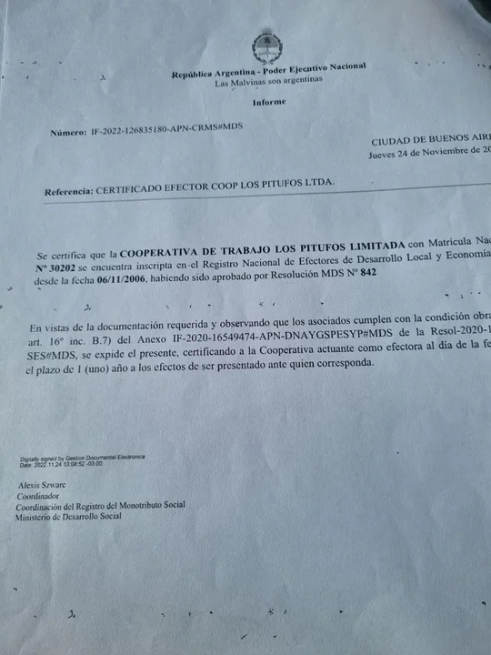 El martes 28 de febrero del 2023, el Ministerio de Desarrollo Social de la Nación de Tolosa Paz, firmó un convenio de colaboración con la cooperativa de Trabajo 15 de Julio Limitada.