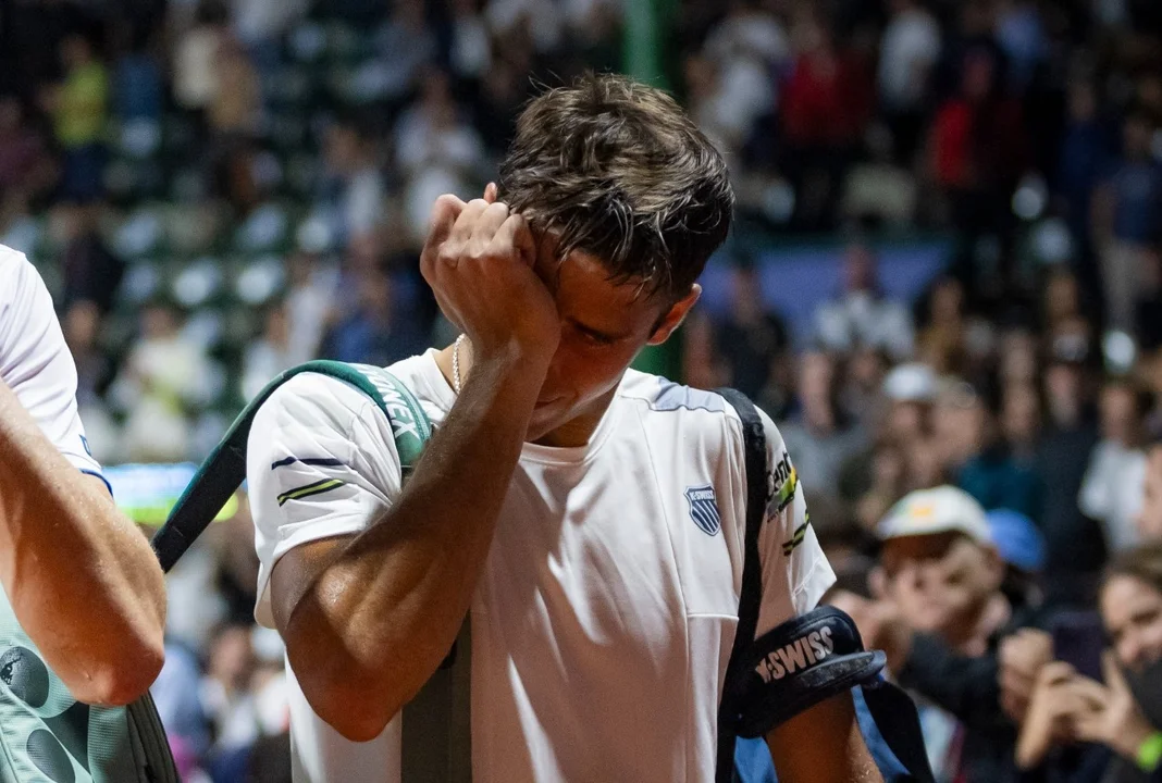 Luego de finalizar el segundo set, el equipo del argentino decidió que debía retirarse ya que no estaba en condiciones de seguir compitiendo y tuvo que irse del Court Central en llanto.