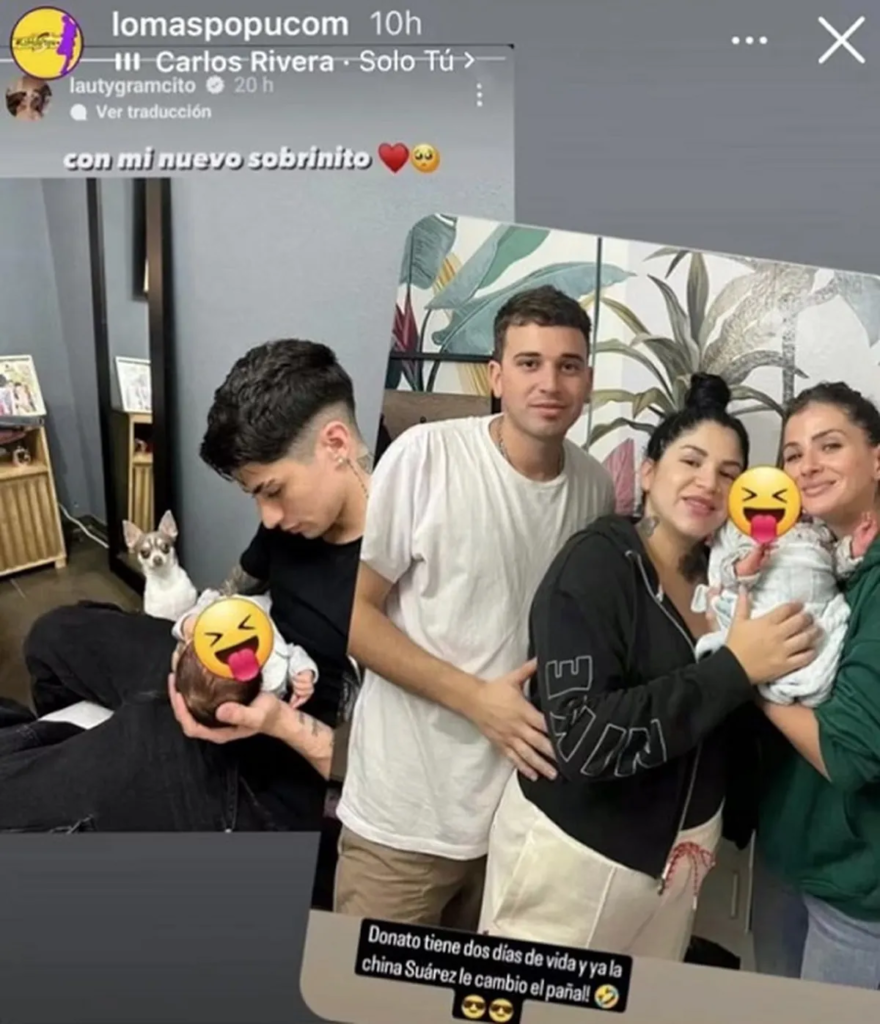 “Lo subió Lo más popu. La hermana de Lauty tuvo un hijo, hablé un par de veces con ella, es divina. A full esté vínculo, van re bien la China y Lauty Gram”, contó la periodista desde las redes con la foto en cuestión.