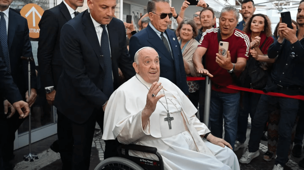 El jesuita argentino salió en silla de ruedas y con una sonrisa de oreja a oreja del Policlínico Gemelli, donde lo esperaba una multitud de feligreses y periodistas en las puertas.