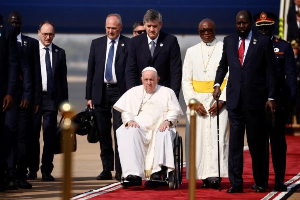 El Papa Francisco llegó a Sudán del Sur, una joven nación africana que lucha contra la guerra, la pobreza y las inundaciones, para una «peregrinación de paz» conjunta sin precedentes con sus homólogos anglicanos y presbiterianos escoceses.