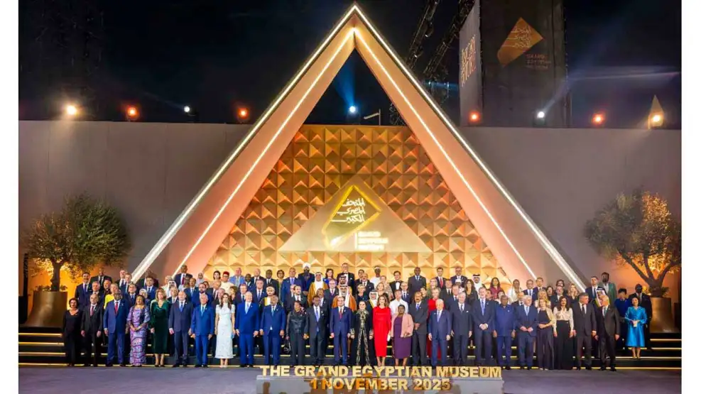 “Estamos escribiendo un nuevo capítulo de la historia del presente y del futuro, en nombre de esta antigua patria”, declaró el presidente de Egipto, Abdel Fatah al Sisi, en la inauguración ofical del Gran Museo Egipcio, en El Cairo. Esta monumental obra tiene vistas panorámicas a las pirámides de Guiza, costó más de mil millones de dólares, y su construcción duró dos décadas.