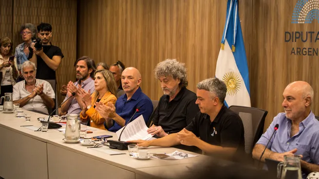 Este miércoles, representantes del Espacio Audiovisual Nacional (EAN), conformado por distintas entidades, expresaron su rechazo a los artículos 195 y 196 de la reforma laboral -reenumerados como 210 y 211-, proyecto que se debatirá la próxima semana en el Senado durante el periodo de sesiones extraordinarias. Mercedes Morán, Julieta Díaz, Bruno Stagnaro, Marcelo Piñeyro, entre otras figuras, estuvieron presentes en la conferencia de prensa moderada por el diputado Esteban Paulón.