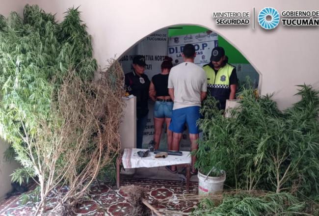 Personal policial de la Unidad de Investigaciones Criminales y Delitos Complejos de Lomas de Tafí, secuestró 16 plantas y 15 gramos de picadura de marihuana en un allanamiento. Además, aprehendió a una mujer y a un varón.