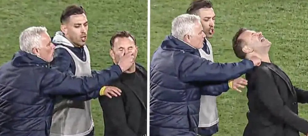 Al final del encuentro, y tras consumarse la eliminación de su equipo, Mourinho protagonizó un gesto que muchos describen como un regreso a sus momentos más cuestionados. El entrenador abordó por la espalda a Okan Buruk y le agarró de la nariz, un acto que recordó a la agresión sufrida por el entonces asistente del FC Barcelona, Tito Vilanova, en la Supercopa de España de 2011: aquella vez, le metió un dedo en el ojo. Entonces, Mou justificó su acción con declaraciones igualmente controversiales, llamando al asistente “Pito Vilanova” y dando a entender que desconocía la identidad del afectado.