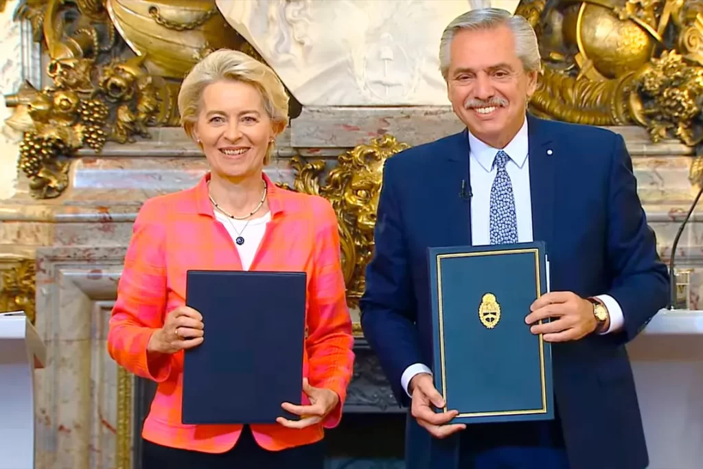 🎙️ "Queremos un acuerdo con la Unión Europea pero que tenga en cuenta las asimetrías de las economías de la región, de otro modo, podría no beneficiar al MERCOSUR". El presidente @alferdez en declaración conjunta a la prensa con la presidenta de la Comisión Europea, @vonderleyen. pic.twitter.com/63bie2TMjJ