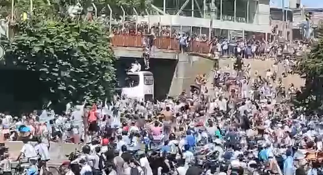 Los desbordes que rodearon a la caravana de los campeones del Mundial de Qatar 2022 fueron tales que los jugadores debieron abordar un helicóptero. Y quizás uno de los momentos más graves fue el instante en que dos hinchas se arrojaron desde un puente hacia el micro que trasladaba a los jugadores.