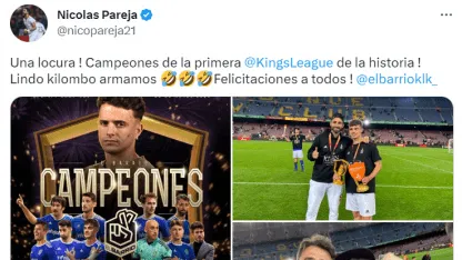Por su parte, Argentinos Juniors también se sumó al festejo en redes sociales. Citó el posteo de la Kings League y agregó: “Felicidades Nico Pareja por lograr el primer campeonato de la Kings League”.