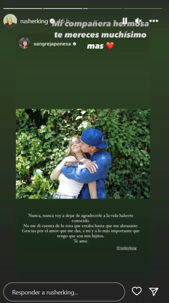 A lo que el joven cantante reposteó la linda historia de su novia, agregó en la romántica postal un corazón y expresó: “Mi compañera hermosa te mereces muchísimo más”.