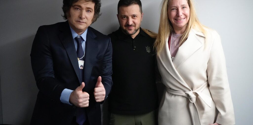 El 10 de diciembre de 2023, cuando asumía su cargo, Milei recibió la visita de Zelenski, gestionada por Biden, en lo que fue la primera visita del ucraniano a Latinoamerica. Zelenski hacía alarde del apoyo de una figura influyente en los medios como Milei entonces, frente Lula da Silva, que priorizó los intereses comerciales entre Brasilia y Moscú y en determinado momento también responsabilizó a Zelenski por su rol en el conflicto.