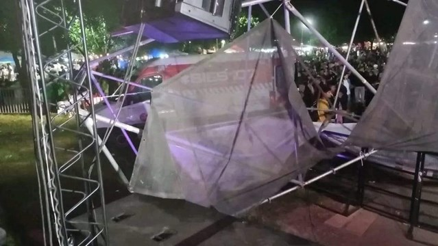 De acuerdo al parte meteorológico, durante el sábado hubo lluvias durante todo el día, pero los vientos se tornaron más fuertes durante la noche lo que provocó que la estructura de gran porte se cayera sobre el público.