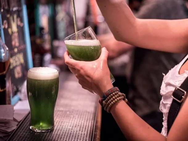Aunque en San Patricio, todos quieren -y deben- probar la cerveza verde, una muestra que se prepara con cerveza de color claro y colorante verde.