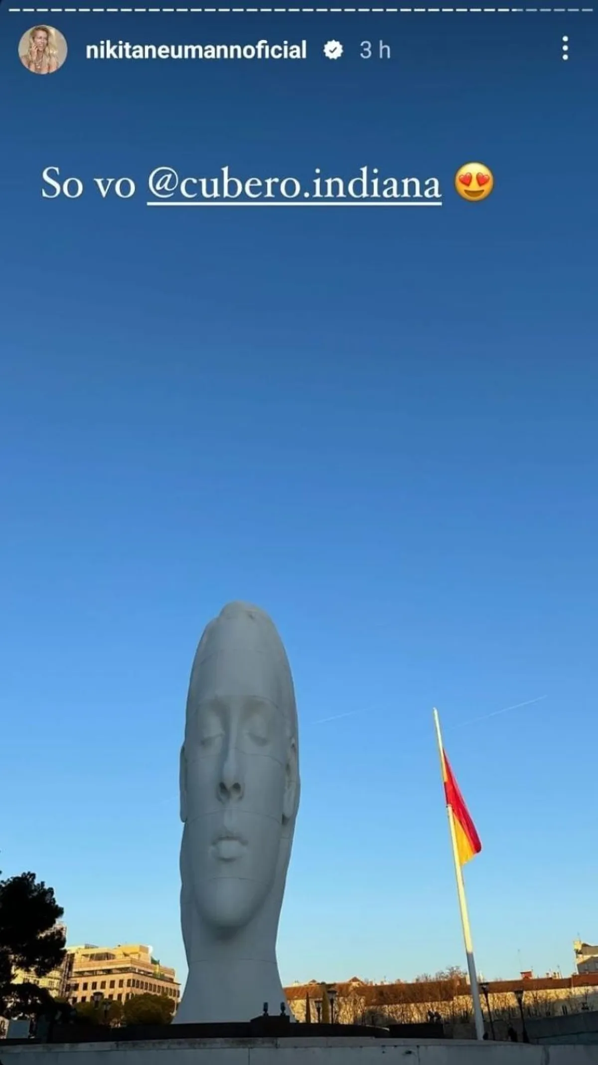 «¿Sos vos Indiana Cubero?», reflejó la rubia en una foto que tomó durante sus días en el viejo continente y en la que se puede ver una enorme escultura de la cabeza de una mujer.