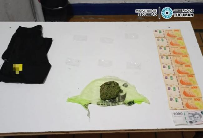 En tal contexto, el segundo jefe subcomisario Dante Castro, ordenó que se le realizara una inspección exhaustiva al paquete. Tras lo cual, encontraron dentro de los bolsillos de un pantalón $10.000 en efectivo, varios papelillos y un cogollo de cannabis sativa.