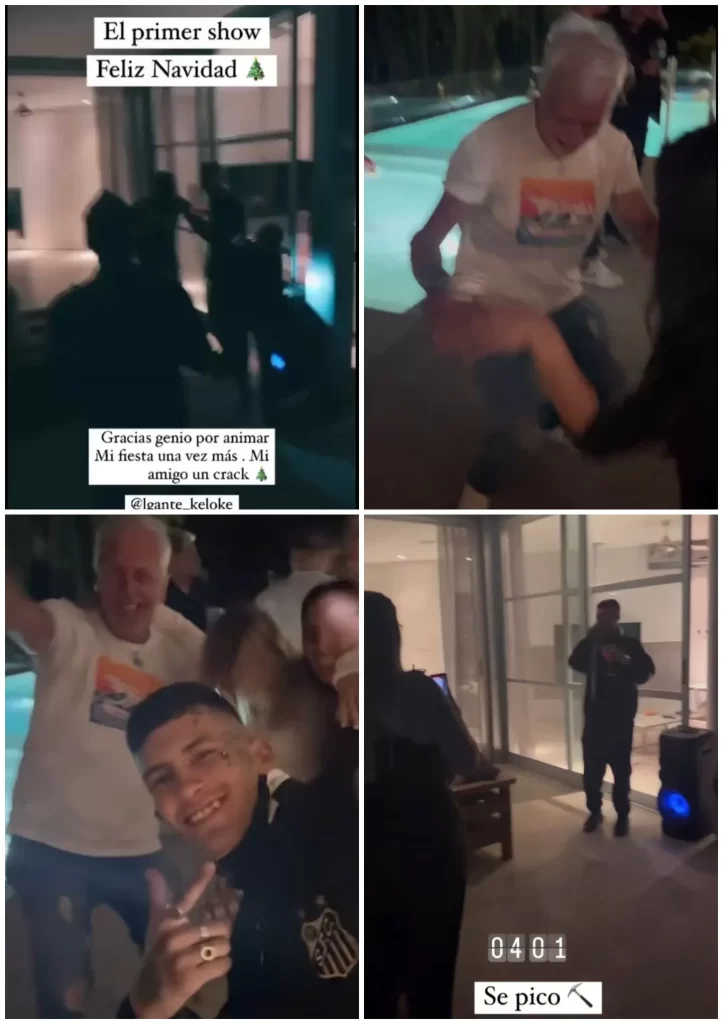 Tras pasar la Nochebuena con Tamara Báez y su hija Jamaica, L-Gante fue a la casa de Wanda Nara. El músico animó la fiesta familiar e hizo bailar a todos, incluyendo al padre del clan, Andrés Nara.