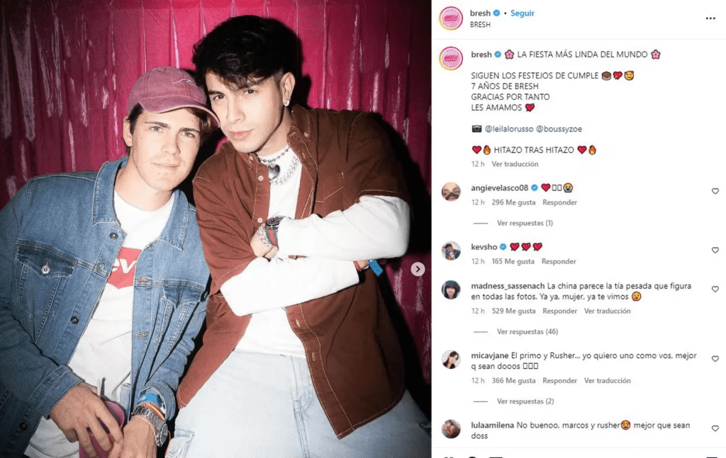 Por el lado de Rusherking, el cantante de trap se mostró junto a Marcos Ginocchio, el ganador de Gran Hermano (Telefe), a quienes retrató en una postal para las redes la cuenta de la famosa fiesta Bresh a la que fueron.