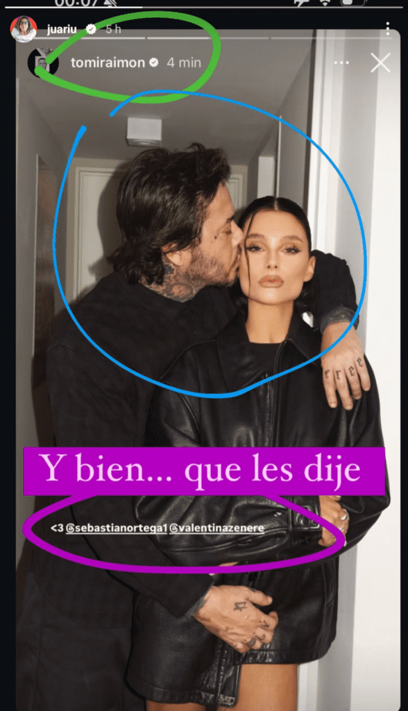 Las sospechas comenzaron cuando Vicky Braier, más conocida como Juariu, encontró que ambos se seguían en las redes y se daban “me gusta”. Sin embargo, ahora se conoció la imagen en la que Sebastián aparece besando a Valentina y tocando su cintura.