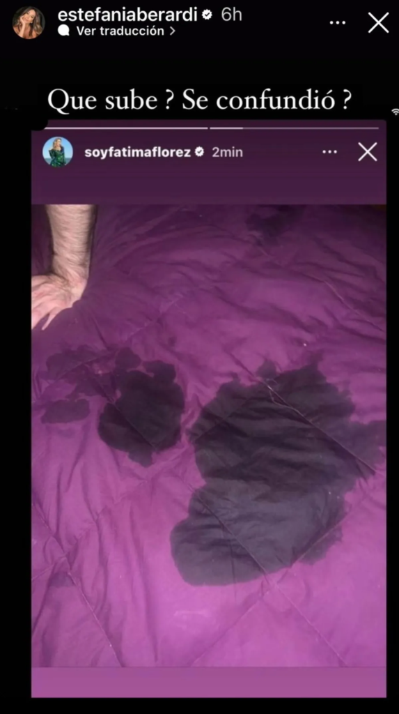 Así las cosas, tal parece que uno de esos encuentros quedó reflejado en una foto que compartió la actriz desde sus Instagram Stories aunque rápidamente la eliminó. Allí llegó a verse el acolchado de su cama con manchas húmedas y un brazo masculino, presumiblemente el de Milei.