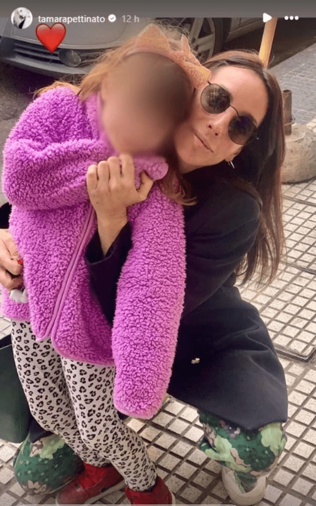 En la postal, Tamara posó abrazada a la única hija que tuvo Felipe Pettinato y acompañó la imagen con un emoji de corazón rojo. La nena nació en 2018 y es fruto de la relación entre el humorista y Sofía Colasante.