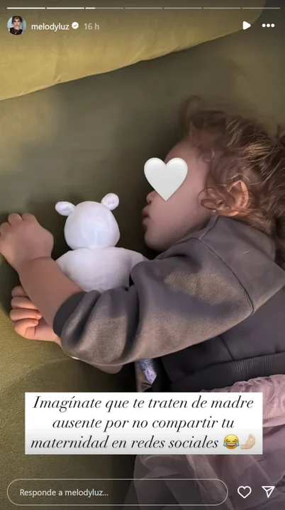 Por otra parte, Melody respondió al gesto de su ex pareja con una fuerte indirecta, remarcando que su maternidad no es menos por no enmarcarla siempre en sus redes sociales.