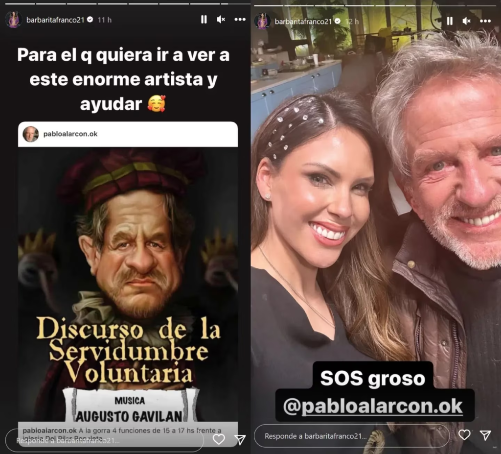 Luego de conocerse su situación, varios artistas y medios se hicieron eco de la noticia. Barby Franco fue una de las figuras que salió a apoyar al artista. “Sos groso”, escribió ella en una historia de Instagram junto a una foto en la que posó con él.